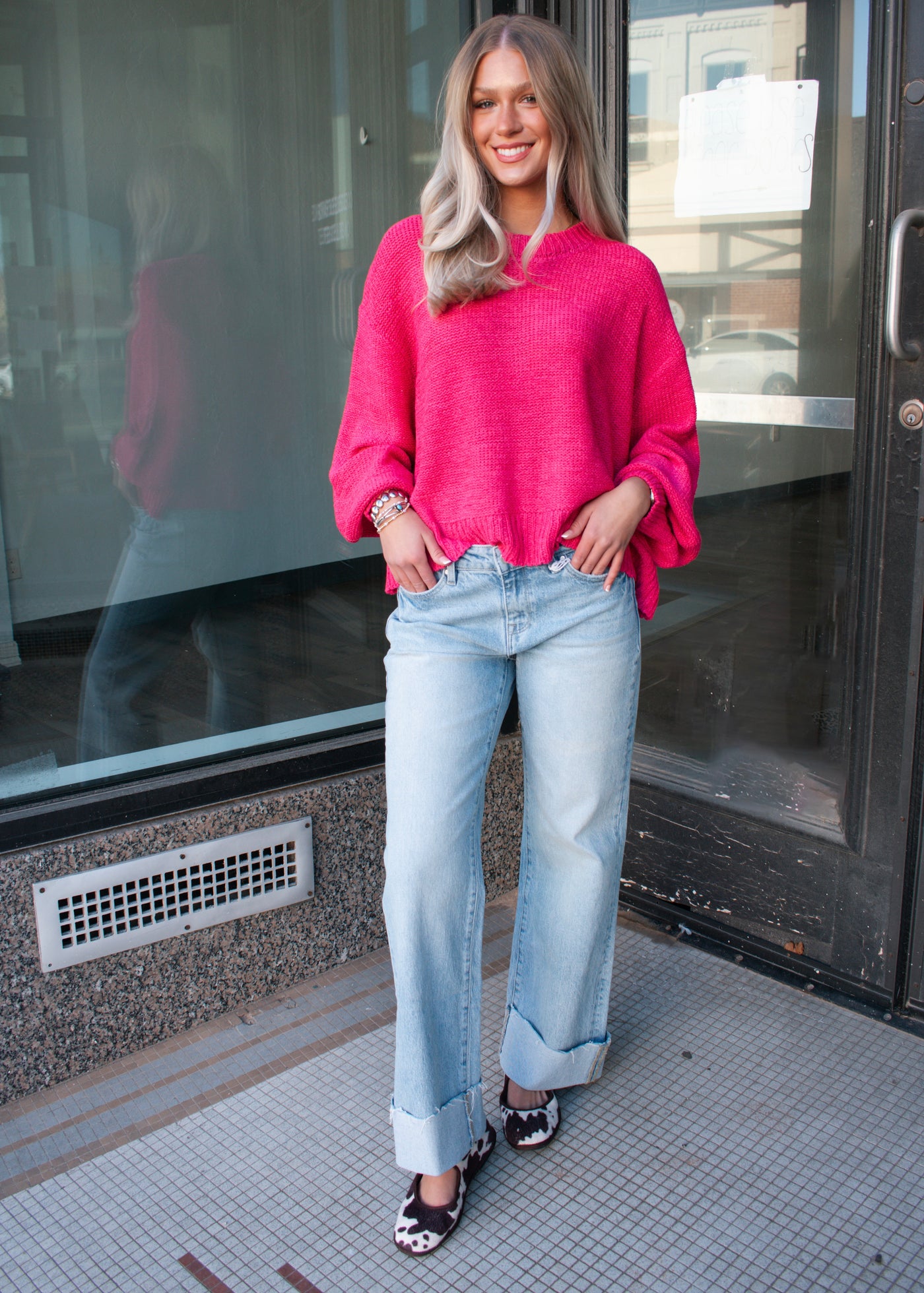 This easy, everyday knit is the perfect blend of comfort and style. Designed with a relaxed, slightly boxy fit, this sweater features a soft textured knit, classic crew neckline, and ribbed trim at the neckline, cuffs, and hem. Lightweight enough for layering but cozy enough to wear on its own, it’s an effortless piece you’ll reach for all season long.