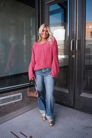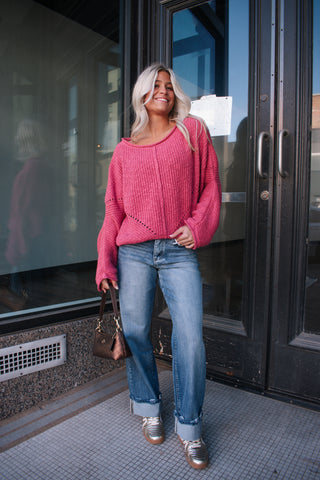 This cozy knit top is the perfect blend of comfort and effortless style. Featuring a soft, textured knit fabric with a relaxed, slouchy fit, this top drapes beautifully for an easy everyday look. The wide neckline adds a flattering touch, while subtle knit detailing along the hem gives it a little extra charm. Easy to dress up or down, this piece pairs perfectly with your favorite denim for a casual-chic outfit.